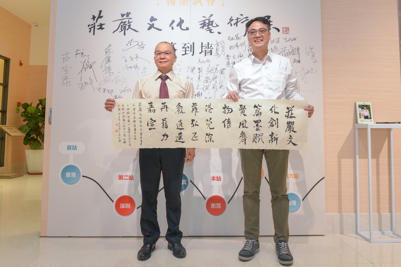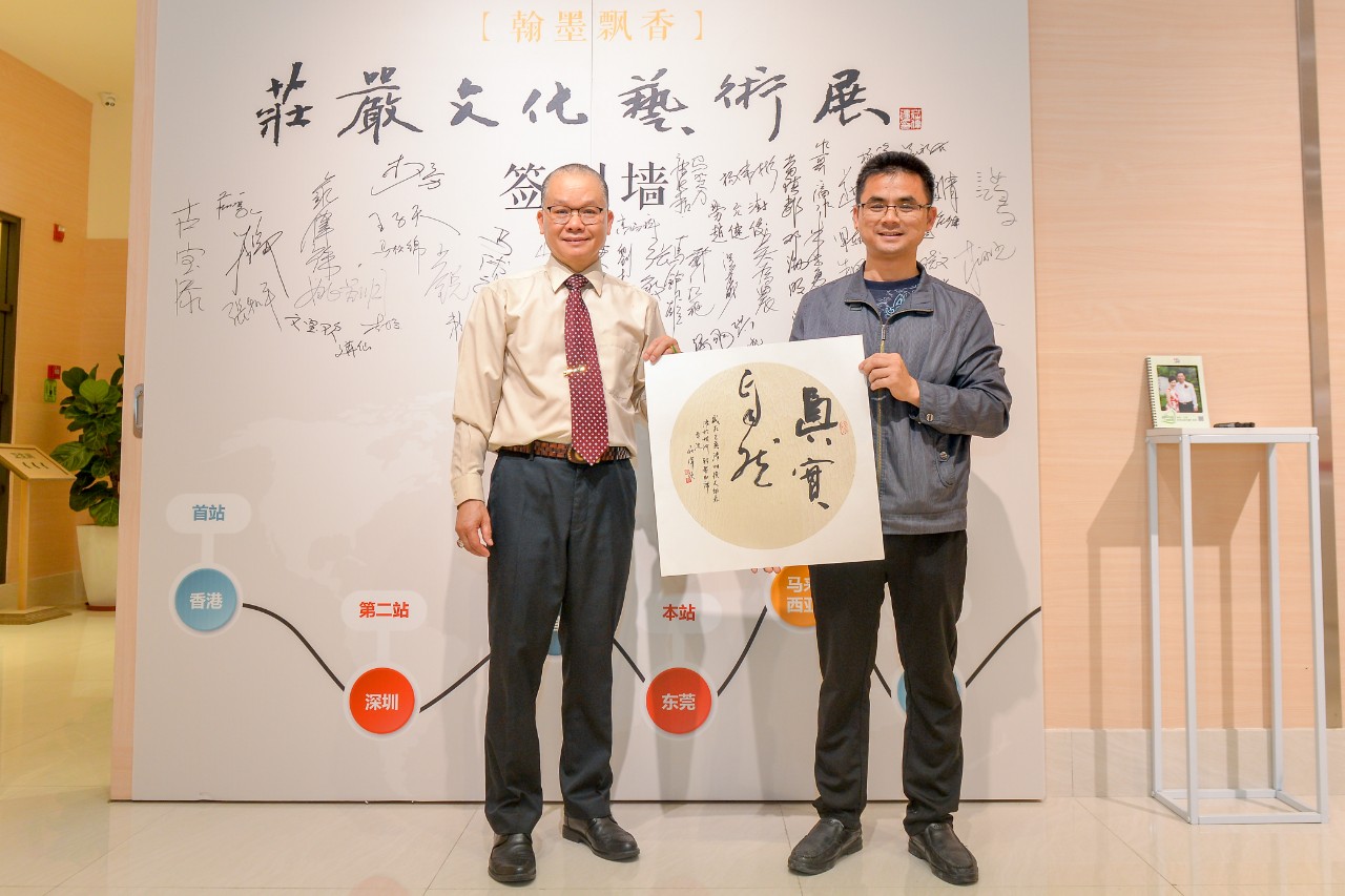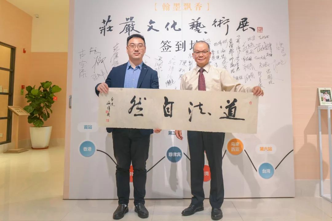 最后,力嘉集团副总经理马楚力与庄严文化艺术会会长庄伟强上台,共同进行[翰墨飘香,庄严文化艺术展]签约仪式,此举动标志着双方将秉承友好合作,共同大力弘扬中华传统文化,进一步促进粤港澳大湾区书画艺术交流与合作。