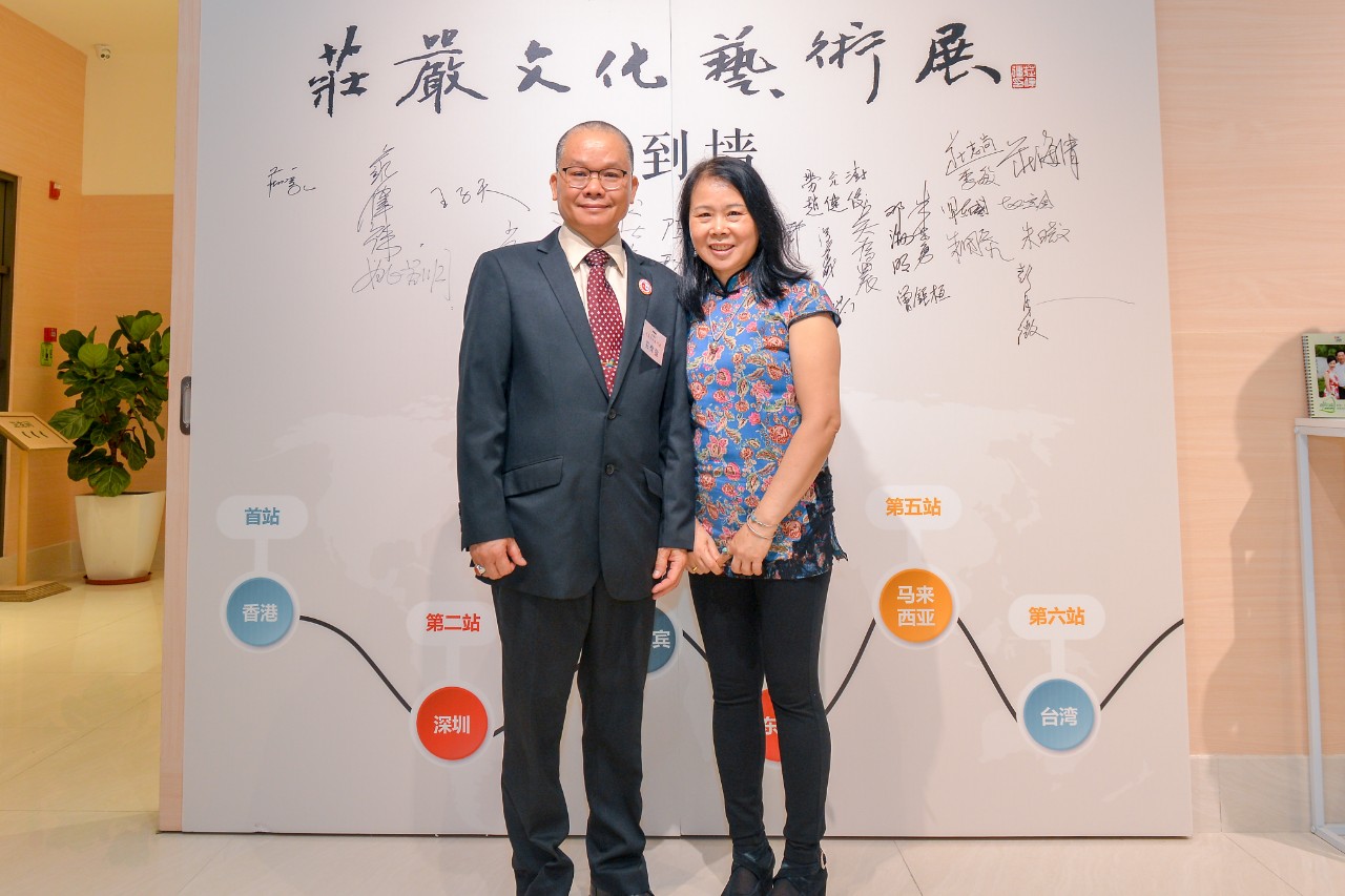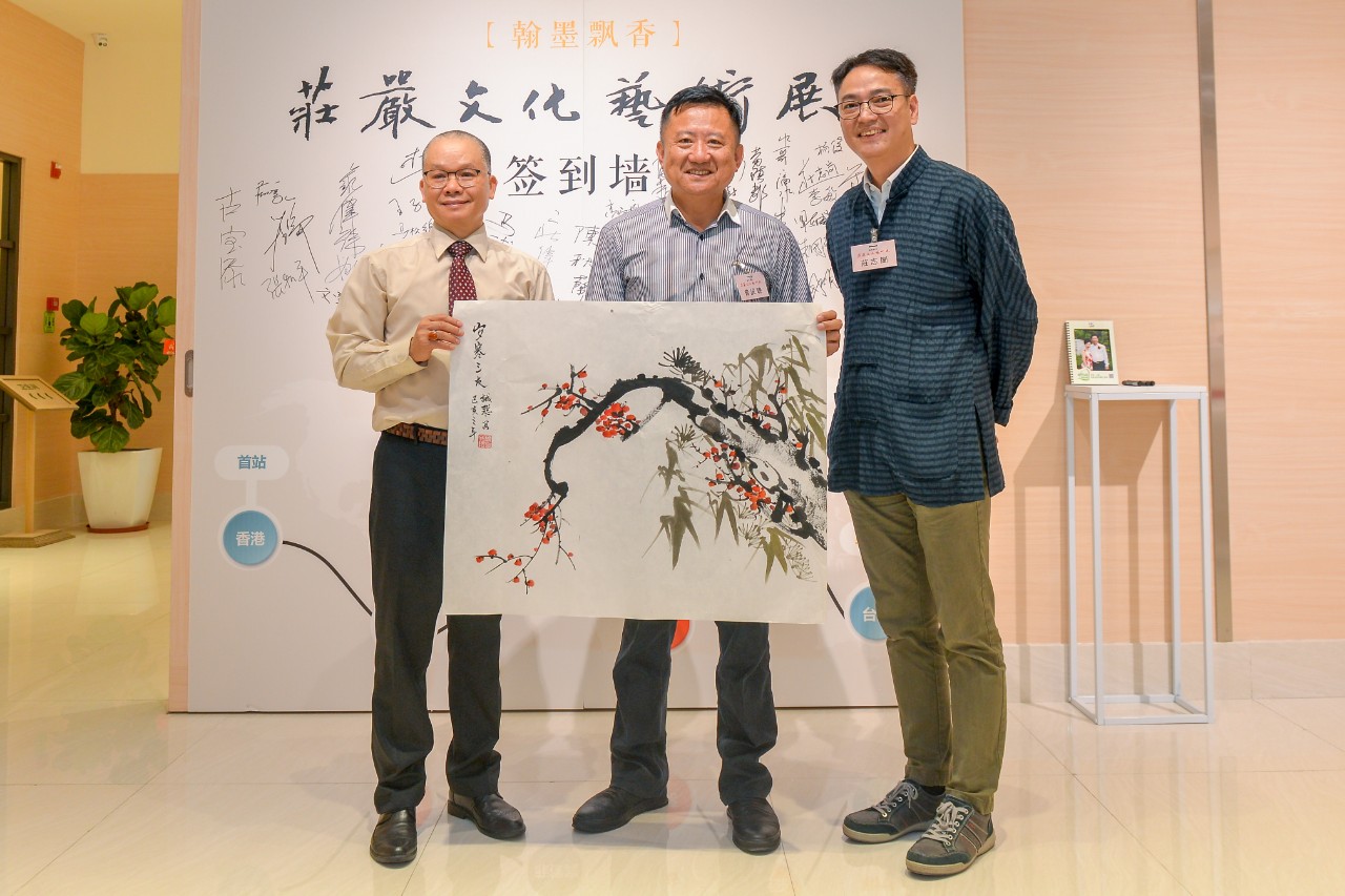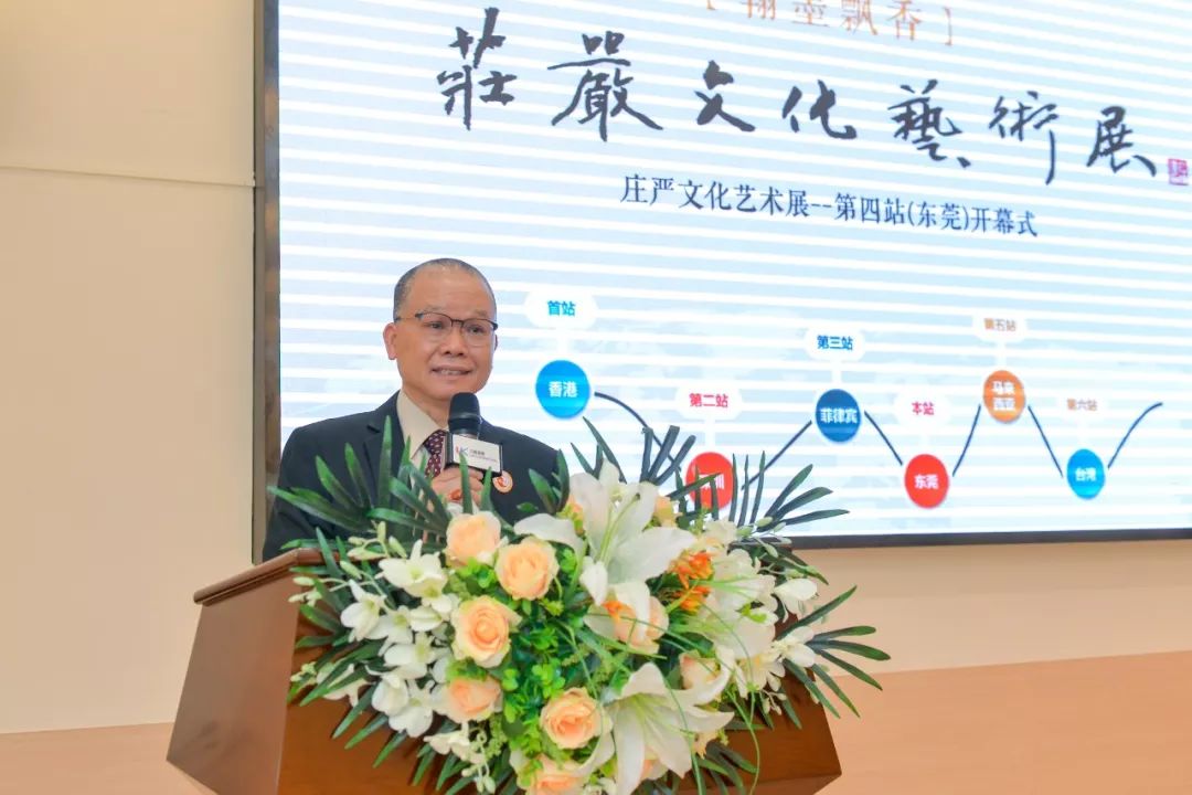 紧接着,庄严文化艺术会会长庄伟强发表致辞,本次展览展示了六十多位来自内地、香港及澳门的书画名家提供作品,希望各位书画家加以指点,我们将一如既往、深入钻研、不断探索,努力将书画的精美作品呈现给广大群众。