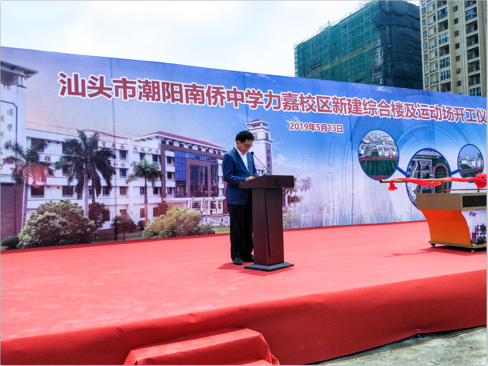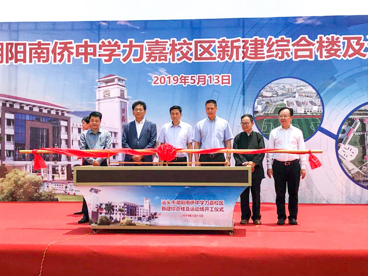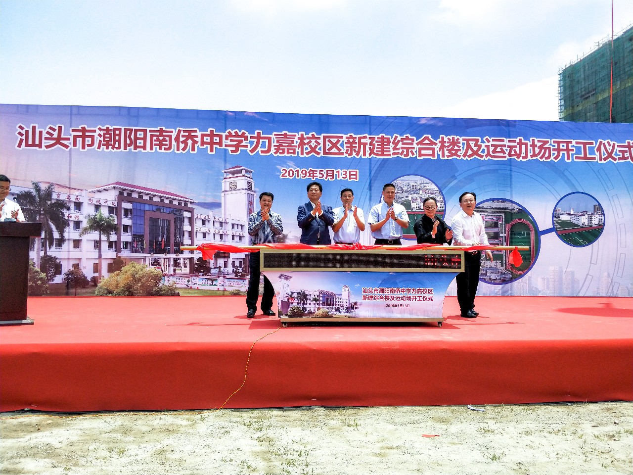 5月13日,由香港力嘉国际集团董事长马伟武、董事总经理马余雄再次捐资1050万元建设的南侨中学力嘉校区综合楼及运动场开工。